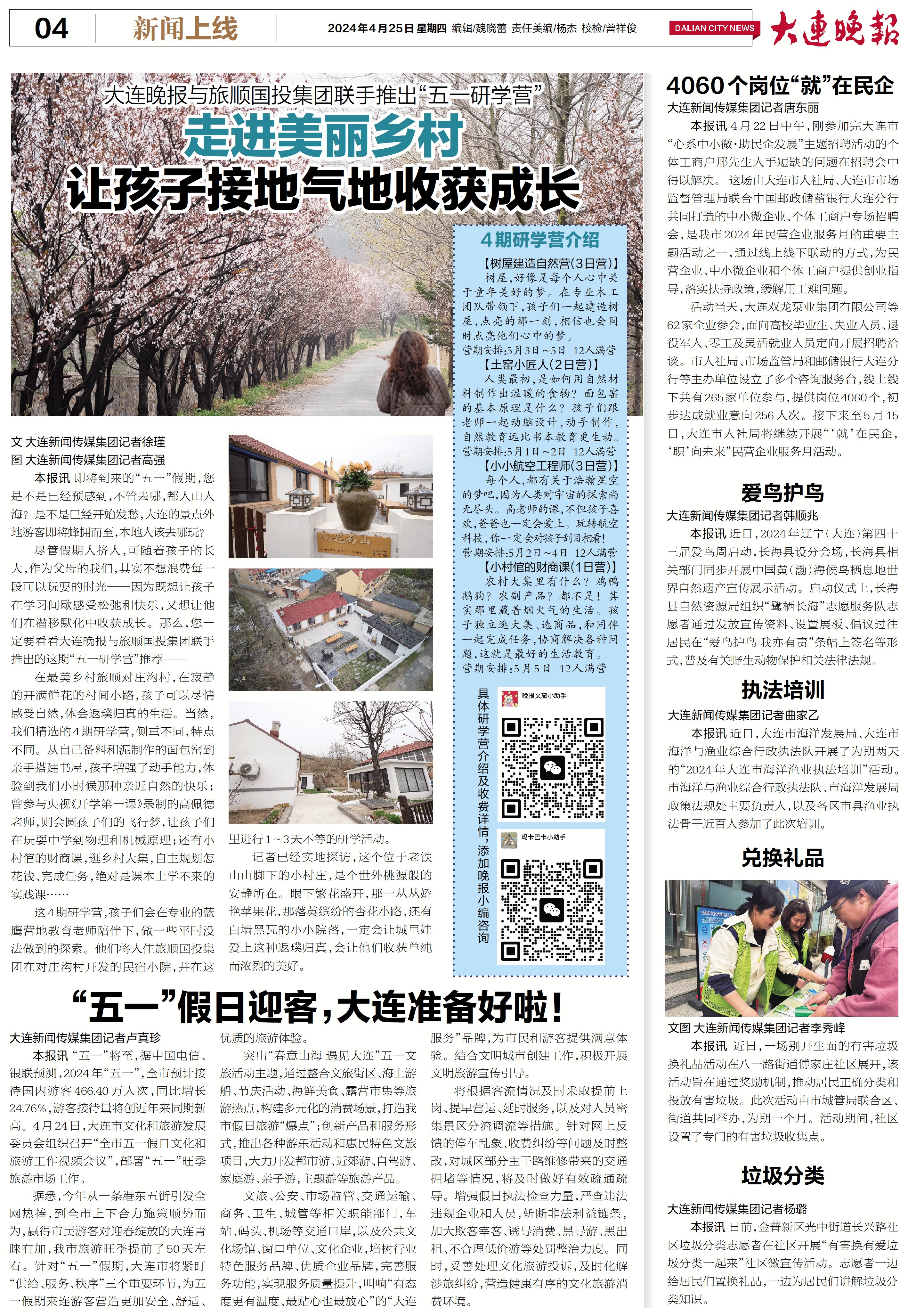 随着“五一”小长假的缓缓落幕,由大连晚报与旅顺国投集团联合推出的“五一研学营”也已圆满收官。此次活动不仅受到众多家长和孩子的热捧,还引起了大连多家媒体的广泛关注。