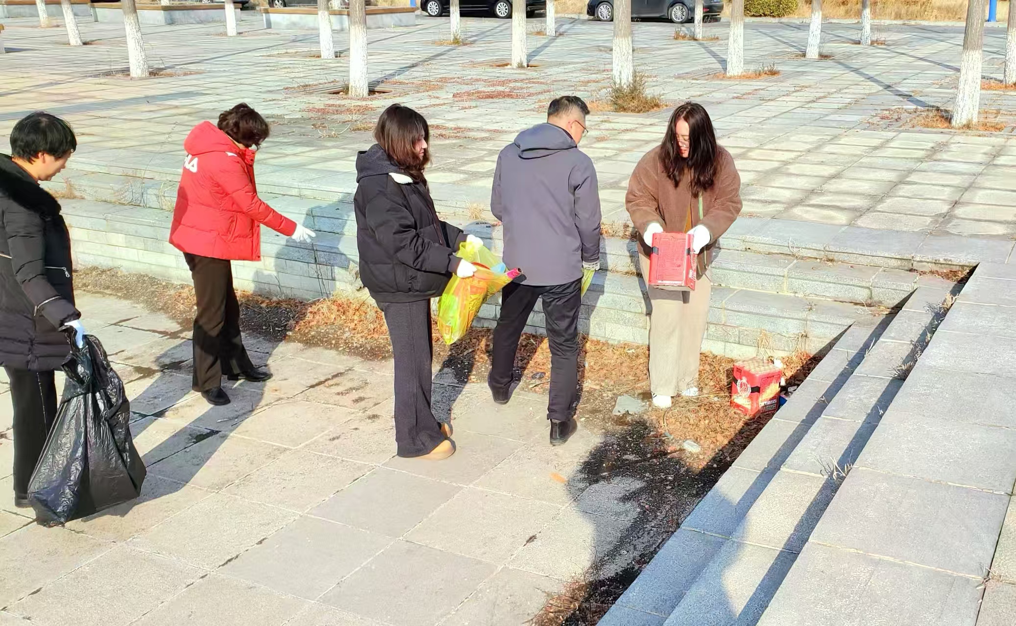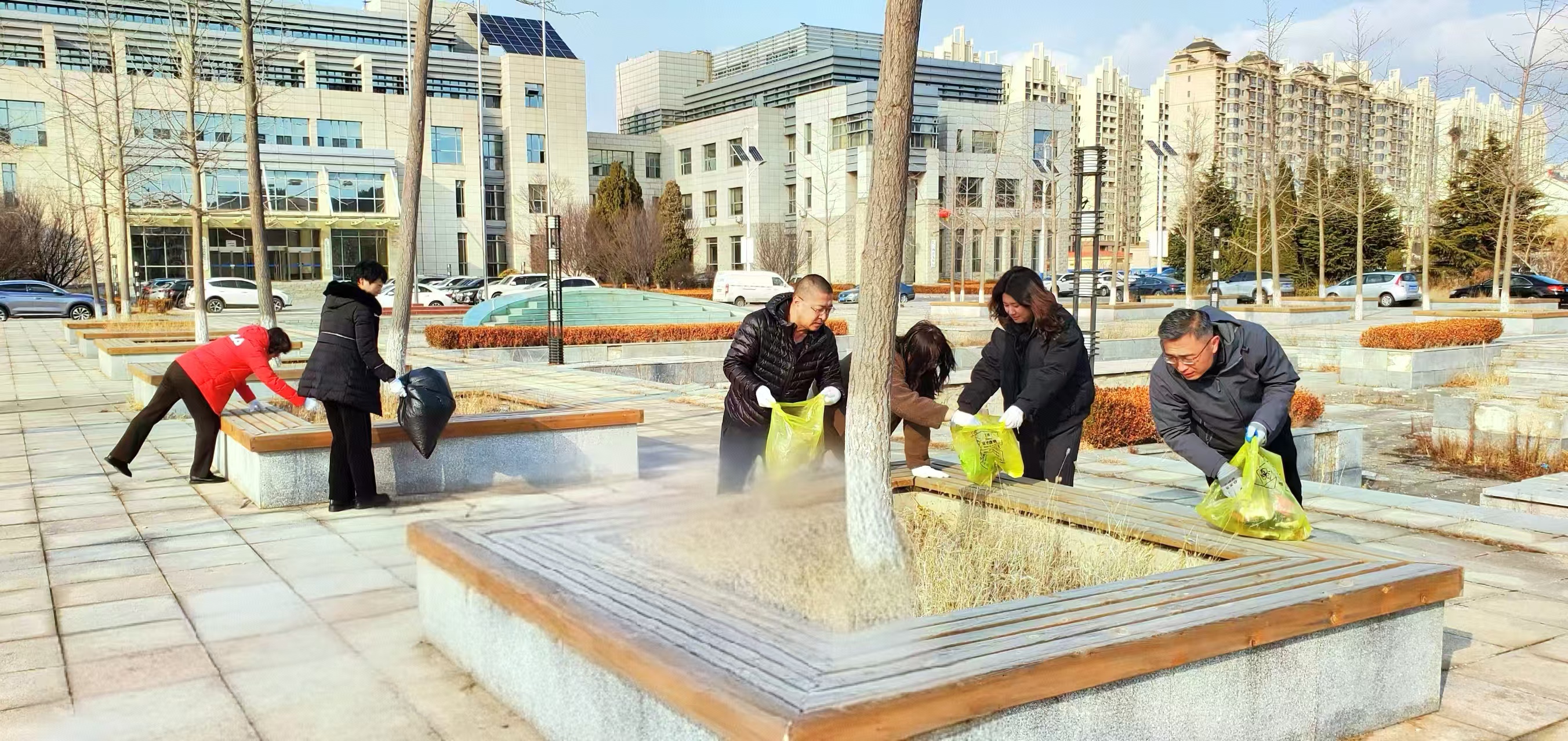 3月5日,玖泰房屋、百傲亚光、承安物业公司20名志愿者开展“学雷锋做奉献、共筑环境整治”活动,清扫路面、清理花坛喷泉与卫生死角,共清理4处死角、5个花坛,捡拾6袋垃圾,办公楼前旧貌换新颜。员工们欣喜表示:“环境变好,工作更舒心高效。”